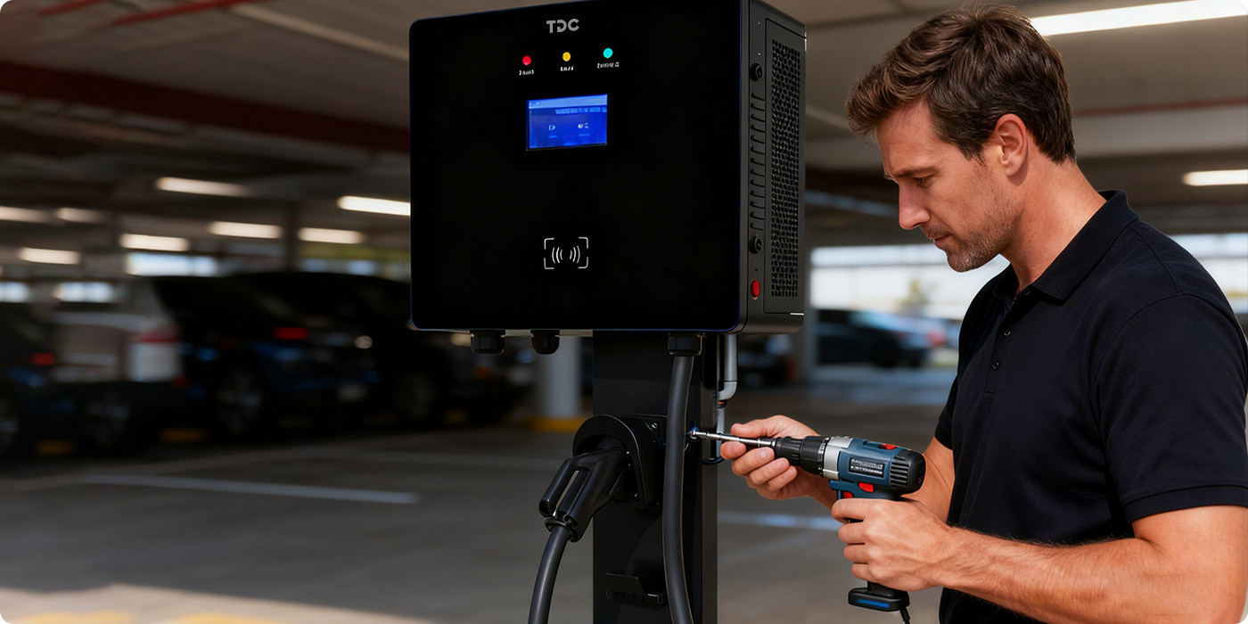 Use the TDC Operations Management Platform for quick setup, with the configuration wizard assisting in setting up connections, load management, power settings, and the OCPP backend.