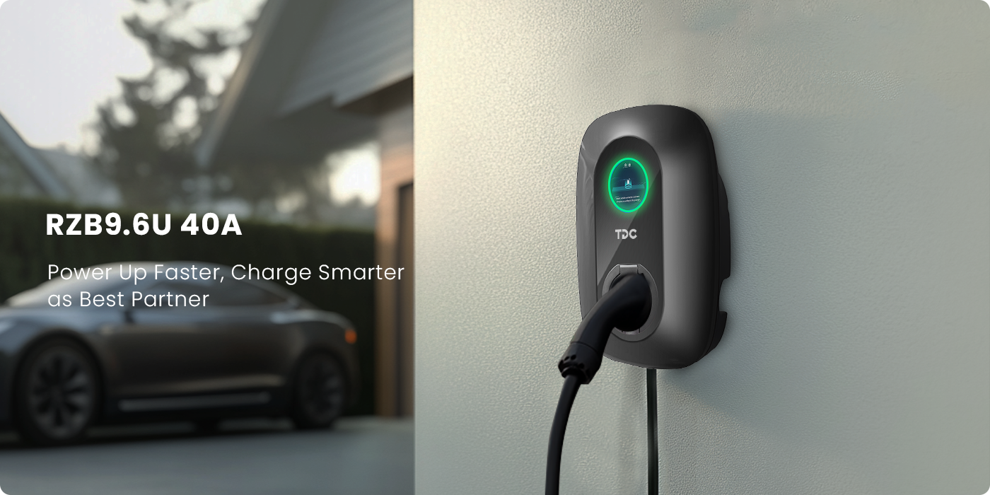 • This 240V, 9.6kW device features advanced charging technology in a compact design, supporting up to 40A and an optional upgrade.