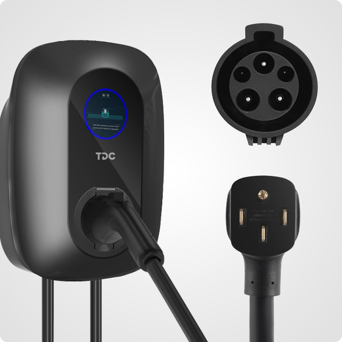 • With a SAE J1772 connector, is compatible with all North American EVs and hybrids and features a NEMA 14-50P plug for versatility, making installation easy in both residential and commercial spaces.