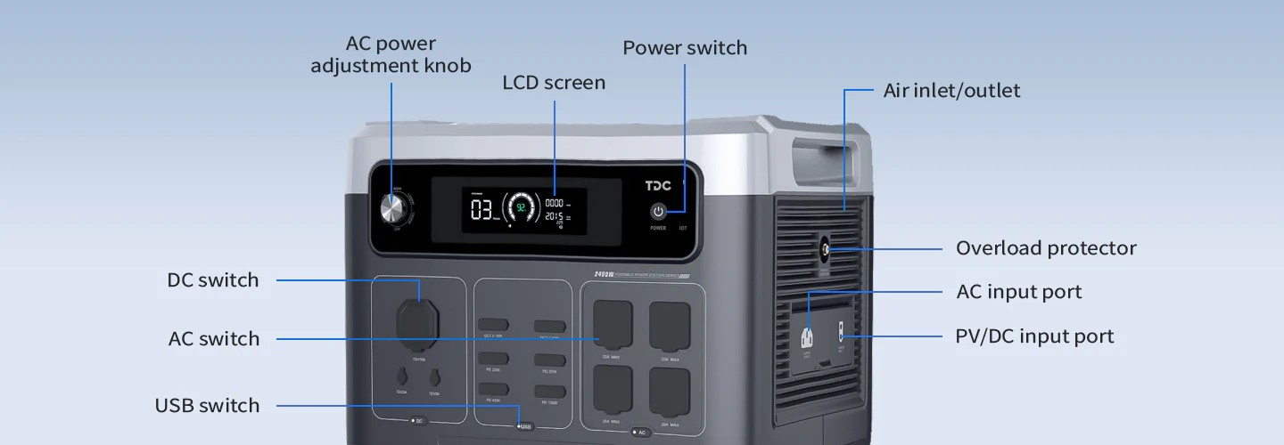 • Huge AC output up 2400W.