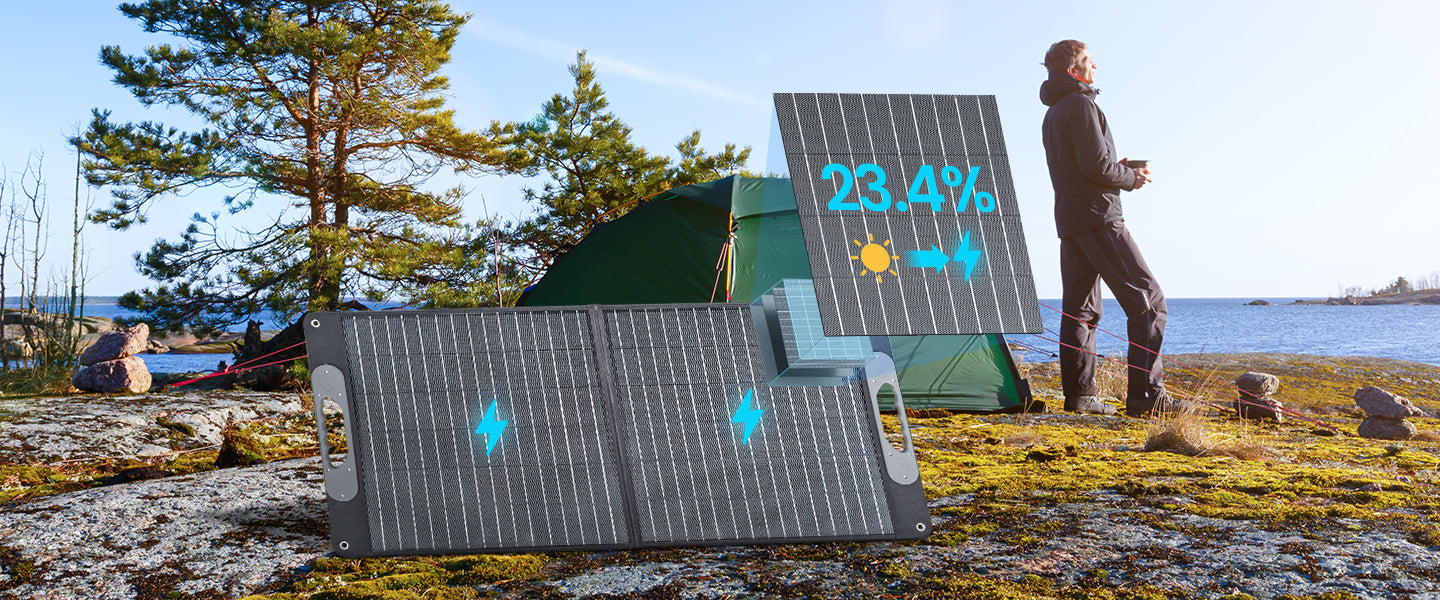 With an industry-leading 23.4% conversion rate, it's far lighter. Adopting a foldable design, the solar panel can be folded compactly into a small size, making it easy to carry and store without taking up too much space. That means a faster, easier charge wherever you are.
