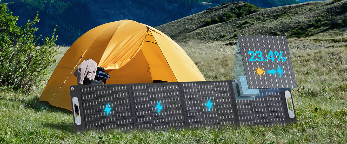 This Solar Panel has a high conversion efficiency of 23% or more, ensuring maximum energy capture from sunlight for faster device charging, making it reliable for outdoor activities and emergencies.