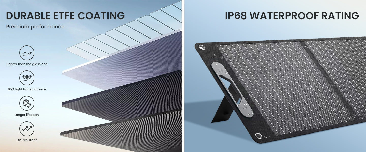 Lightweight design, making it is exceptionally lightweight and easy to carry. Its compact, foldable design makes it highly portable for camping trips, hikes, or any off-grid activities, without sacrificing power output.