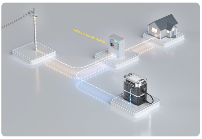 ROP2000 can integrate with dual power automatic transfer switch and supply continued electricity to the home grid during power outages.