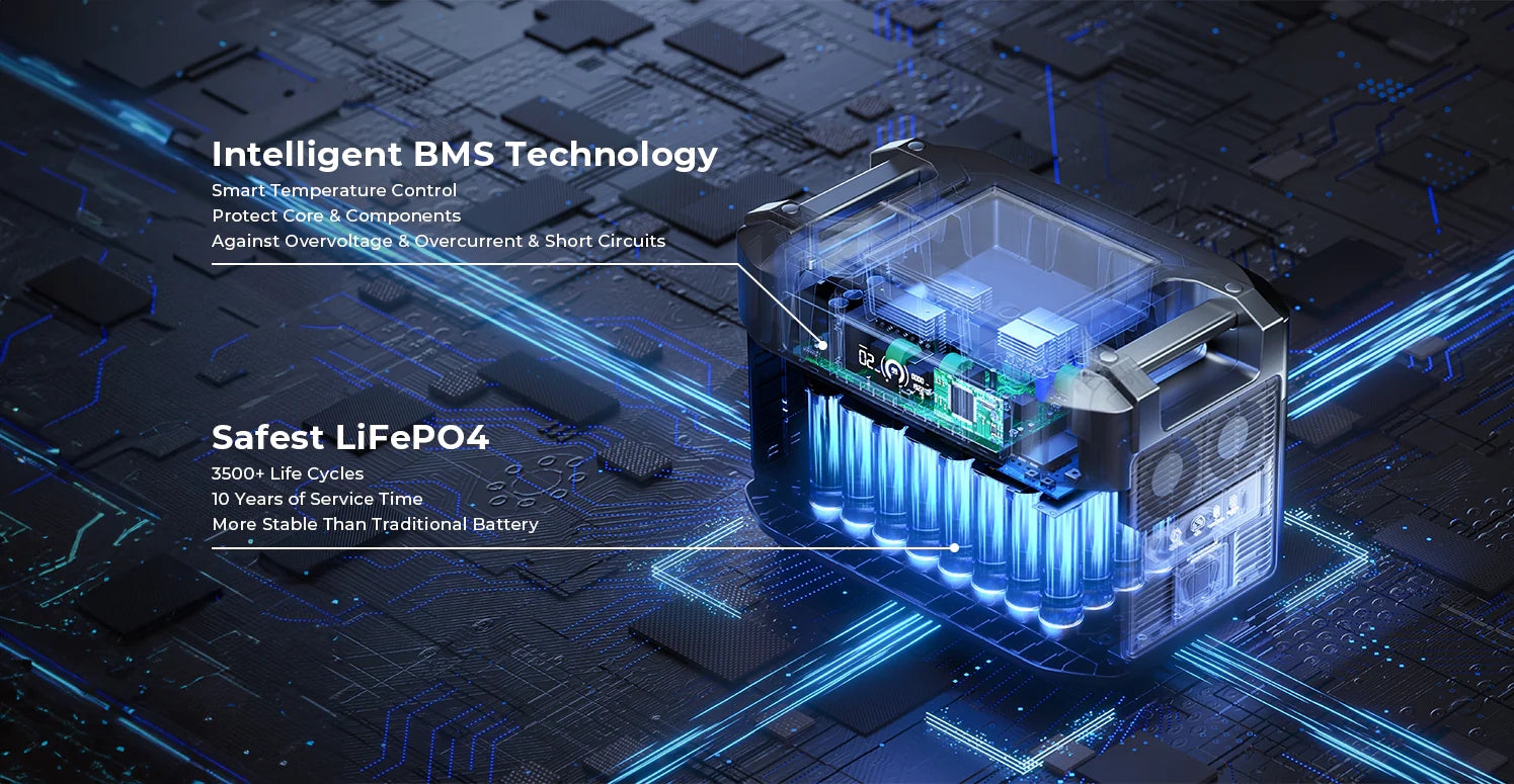 Utilizing a LiFePO4 battery, ROP2000+ROB2000 prioritizes safety and durability. Known for its long lifespan, thermal stability, and reliable performance, the LiFePO4 battery ensures secure and efficient power delivery, making it a trustworthy choice for all your energy needs.